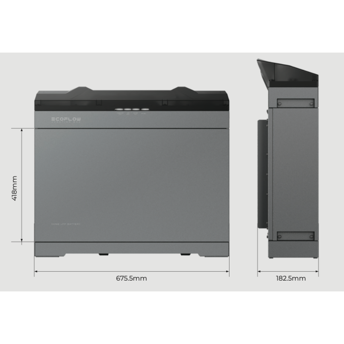 Має міцний та надійний матовий металевий матеріал. Завдяки компактному розміру всього 180 мм, батарея чудово вписується в підвал або гараж і зберігає більше місця для інших пристроїв. На інверторі та контрольній коробці є відкидний клапан для приховання кабелів.