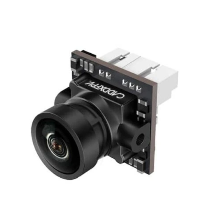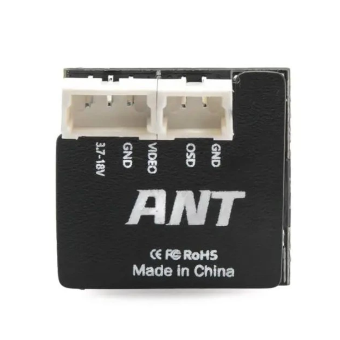 Камера Caddx Ant Nano — це ультралегка бюджетна камера формату 14×14 мм, вагою лише 2 г, яка підтримує OSD-меню, живлення 3,7–18 В, Global WDR, перемикання NTSC/PAL та відеовихід CVBS. Унікальна особливість — 3D DNR, що забезпечує чисте й чітке зображення без «зерна» та шумів під час польоту. Для більших збірок Nano можна встановити в кронштейн 19 мм (входить у комплект).