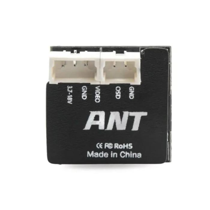 Камера Caddx Ant Nano — це ультралегка бюджетна камера формату 14×14 мм, вагою лише 2 г, яка підтримує OSD-меню, живлення 3,7–18 В, Global WDR, перемикання NTSC/PAL та відеовихід CVBS. Унікальна особливість — 3D DNR, що забезпечує чисте й чітке зображення без «зерна» та шумів під час польоту. Для більших збірок Nano можна встановити в кронштейн 19 мм (входить у комплект).