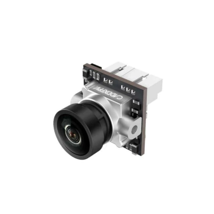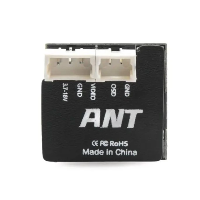 Камера Caddx Ant Nano — це ультралегка бюджетна камера формату 14×14 мм, вагою лише 2 г, яка підтримує OSD-меню, живлення 3,7–18 В, Global WDR, перемикання NTSC/PAL та відеовихід CVBS. Унікальна особливість — 3D DNR, що забезпечує чисте й чітке зображення без «зерна» та шумів під час польоту. Для більших збірок Nano можна встановити в кронштейн 19 мм (входить у комплект).