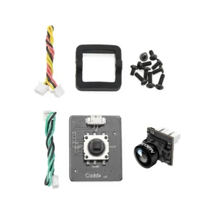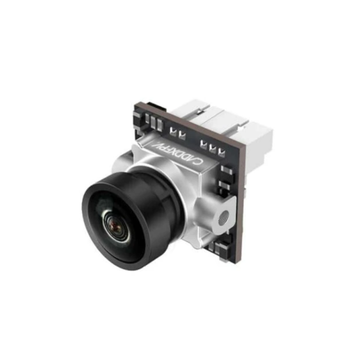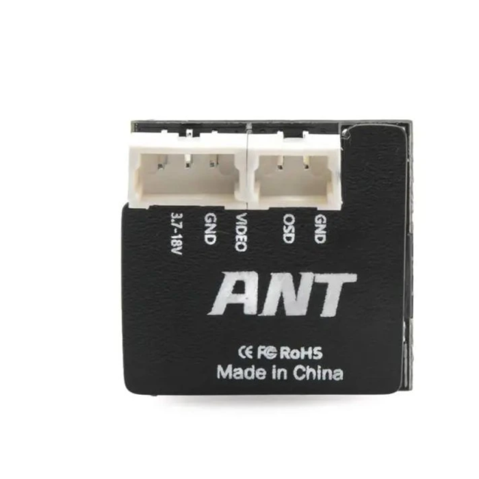 Камера Caddx Ant Nano — це ультралегка бюджетна камера формату 14×14 мм, вагою лише 2 г, яка підтримує OSD-меню, живлення 3,7–18 В, Global WDR, перемикання NTSC/PAL та відеовихід CVBS. Унікальна особливість — 3D DNR, що забезпечує чисте й чітке зображення без зайвого «зерна» та шумів під час польоту. Для більших збірок Nano можна встановити в кронштейн 19 мм (входить у комплект).