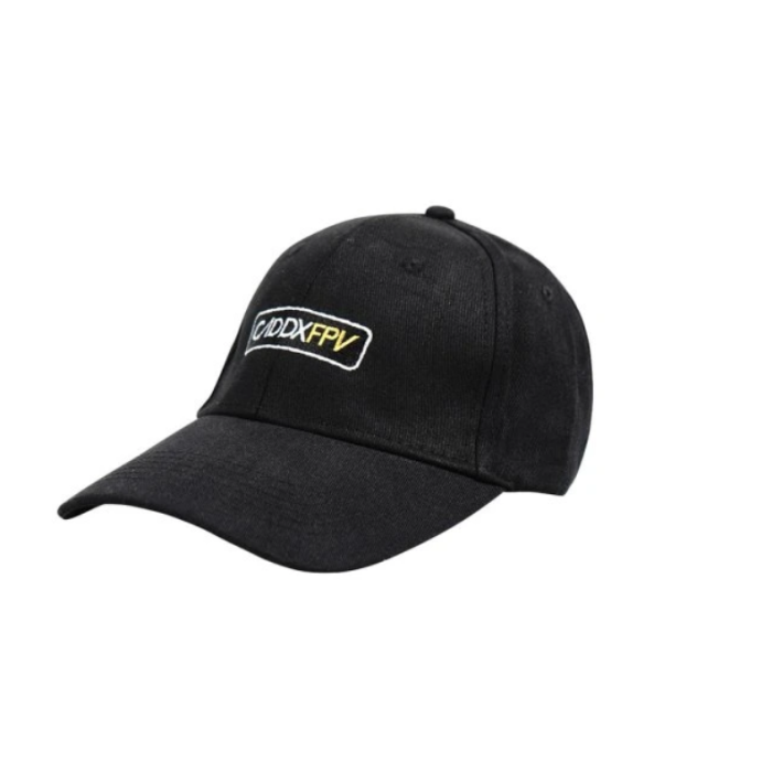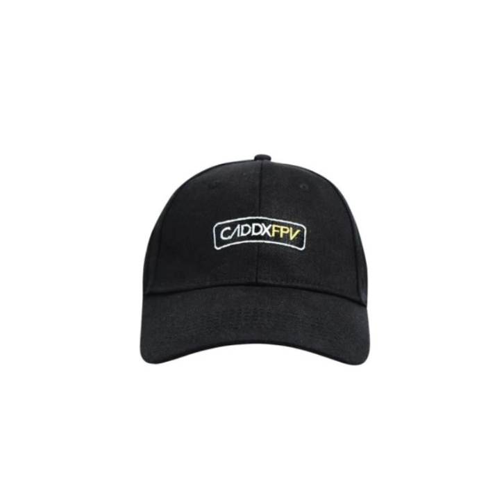 Чорна бейсболка з вишитим логотипом CaddxFPV для фанатів дронів. Стильний і комфортний аксесуар, виготовлений із якісних матеріалів.