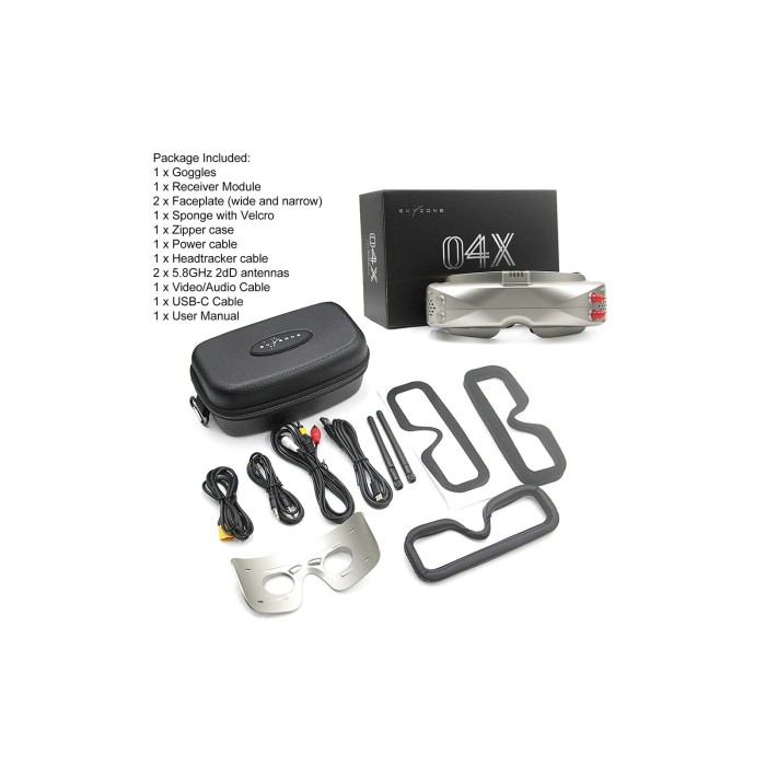 Вбудований Head Tracker кулера прокручування Новий інтерфейс користувача на 10 мовах 4 попередньо встановлених налаштувань зображення: стандартний, яскравий, насичений, м'який. 3 індивідуальні налаштування: для польоту в приміщенні, на відкритому повітрі або в різну погоду Усі інтерфейси розташовані разом у нижній частині відеоочків: USB-C, DC IN, HT OUT, вхід AV та порт HDMI, 3.5 jack, порт Head Tracker та слот для SD-карти Легка вага та компактний дизайн Вхідна напруга: LiPo акумулятор від 2S до 6S або вхід USB5V.