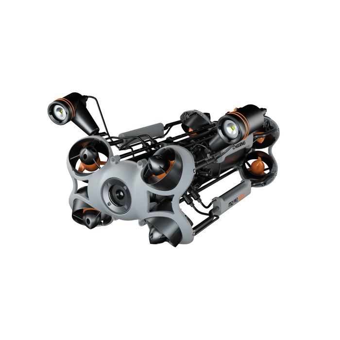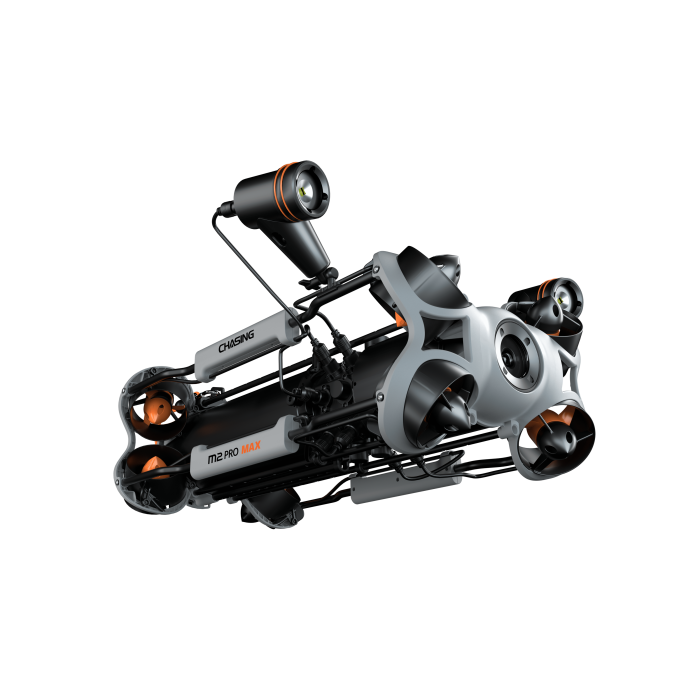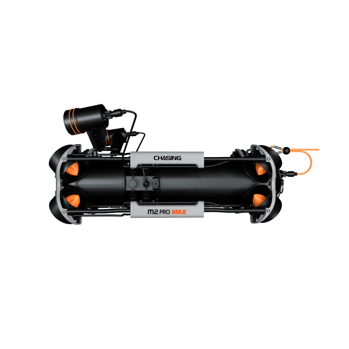 CHASING M2 PRO MAX — це промисловий підводний дрон, що управляється дистанційно (ROV) та розроблений для використання державними та корпоративними користувачами. Він оснащений 8 двигунами, що дозволяють пристрою рухатись на 360 градусів. Завдяки ROV дрон може здійснювати навігацію з максимальною швидкістю 1,5 м/с, занурюватися на глибину до 200 метрів і пересуватися в межах максимально дозволеного горизонтального радіуса у 400 метрів.