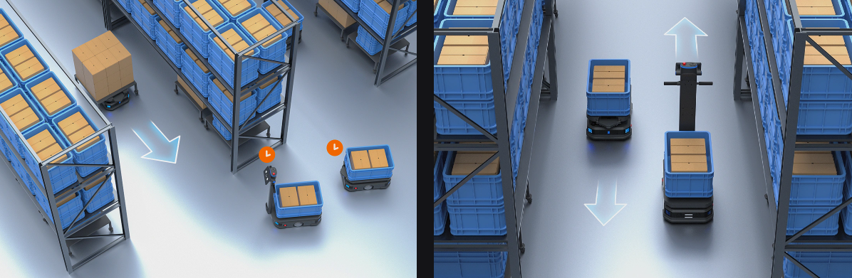 Оснащена передовими навігаційними та сприйнятними системами, серія T600 інтелектуально визначає місця зберігання цілей і автономно виконує операції вибору та розміщення. Це дозволяє вести повністю безпілотні робочі процеси, забезпечуючи ефективні та надійні роботи на складі.